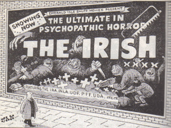 No auge da guerra na Irlanda, piadas anti-irlandesas e caricaturas racistas encontravam-se por toda parte. O Evening Standard publicou um chamado ‘The Irish’, por JAK, em 29 de Outubro de 1982, e Ken Livingstone retirou toda a publicidade deles do Conselho da Grande Londres (GLC, nas siglas em inglês).