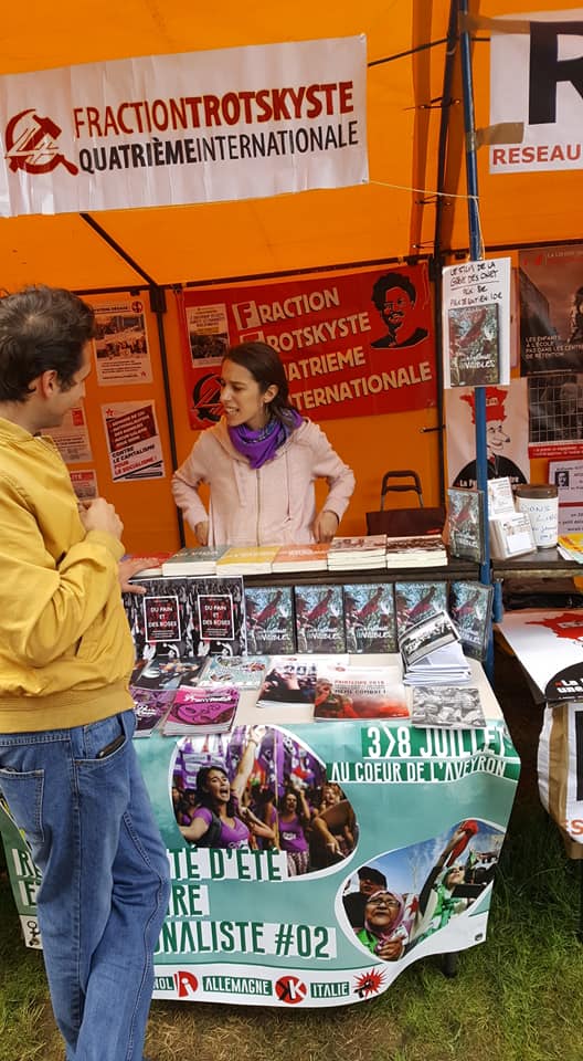 The whole of the French left is invited and there are no restrictions on attendance the entrance is 12 Euros for the 3 days cheap as chips. The figures went from about 5000 on the Friday as we set up camp to 20 to 30,000 as members of the public strolled in on both Saturday and Sunday. They ferried people to the site on continuous shuttle of 5 coaches leaving every half hour from Saint-Denis – Université the nearest metro station. Those with cars parked in a field nearby. This was filling up as we arrived.