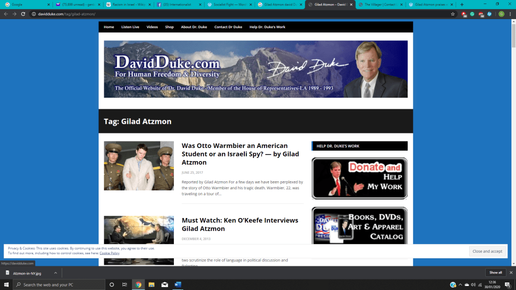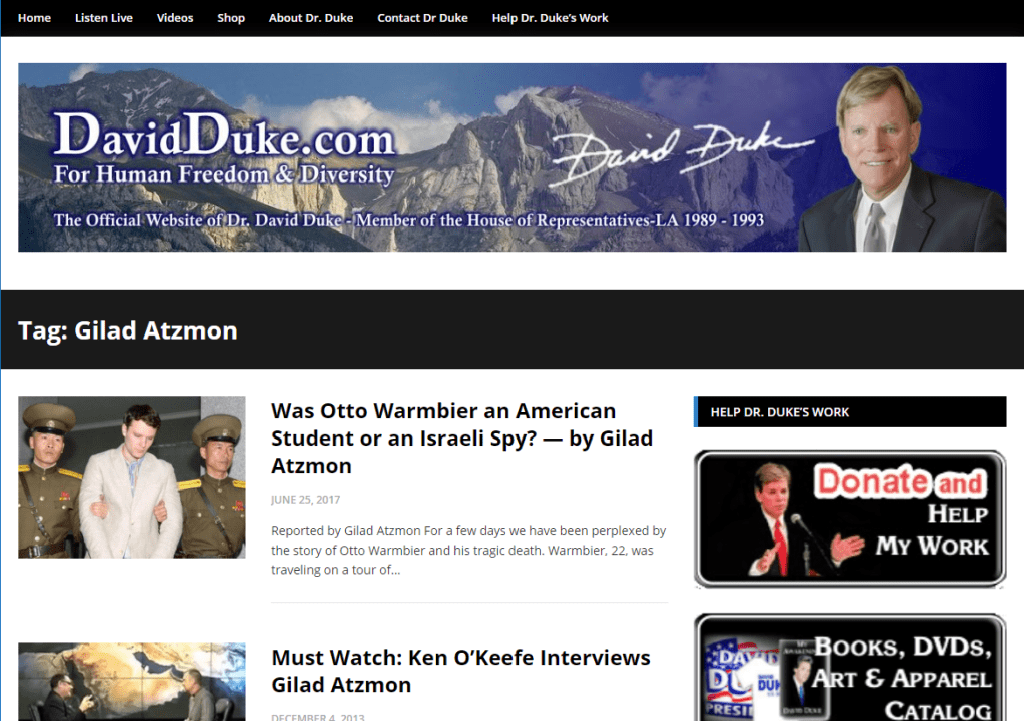 What about a white supremacist former Imperial Wizard of the Ku Klux Klan? Here is David Duke’s letter to Gilad Atzmon in September 2011: