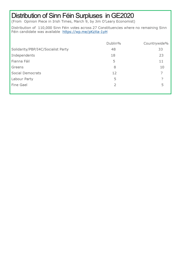 Distribution of 110,000 Sinn Féin votes across 27 Constituencies where no remaining Sinn Féin candidate was available https://wp.me/pKzXa-1yH
