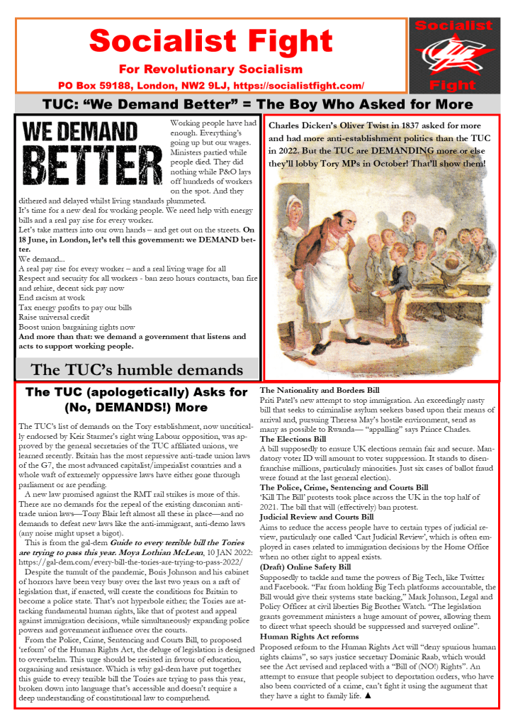 The Socialist Fight leaflet for the TUC march on 18 June.