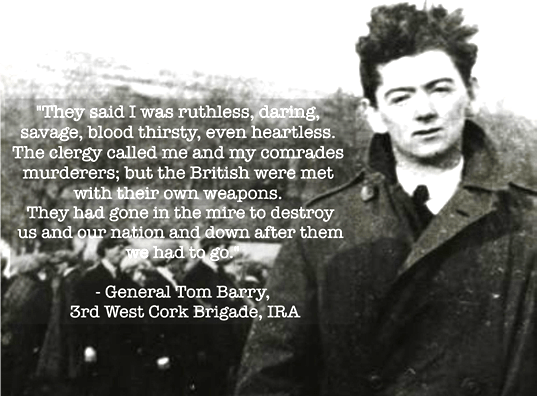 “There can be no doubt as to why the death roll of the West Cork IRA dropped so amazingly. It was solely because British terror was met by a not less effective IRA counter-terror. We were now hard, cold and ruthless as our enemies had been since hostilities began. The British were met with their own weapons. They had gone down in the mire to destroy us and our nation, and down after them we had to go to stop them.”