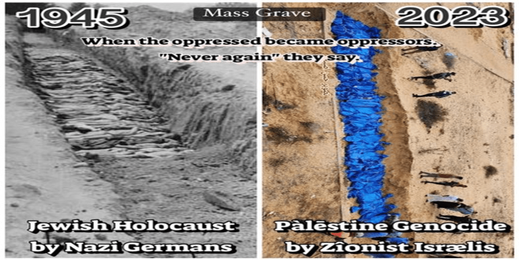 Hitler and Rosenberg dehumanised Jews as “human animals” to prepare the Holocaust. The fascist Gallant also said, “We are imposing a complete siege on Gaza. There will be no electricity, no food, no water, no fuel. Everything will be closed”, clearly illegal collective punishment. But the ICC in the Hague is a toothless beast when on the war crimes of the US and its allies like the 1968 Mai Lai massacre, Abu Ghraib 2003, 40,000 civilian dead in the 2017 siege of Mosul, etc.