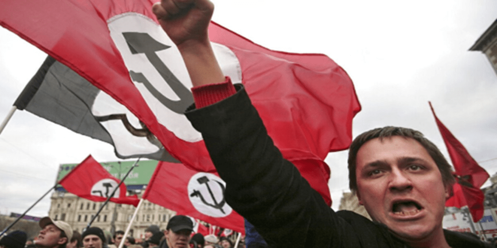 Wikipedia [2] says, “National Bolshevism, whose supporters are known as National Bolsheviks and colloquially as Nazbols, is a syncretic political movement committed to combining ultranationalism and communism.”